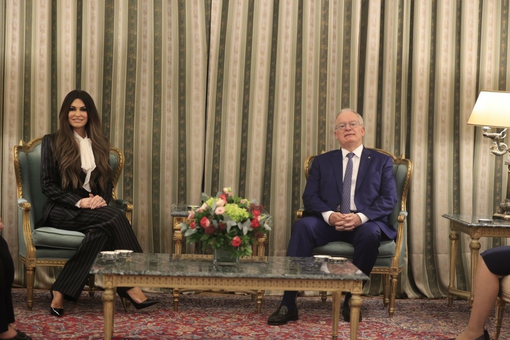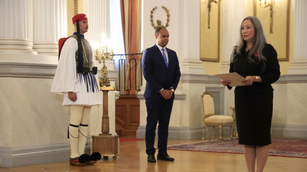 Η Αμερικανίδα λίγο πριν τις 13:00 έφτασε στο Προεδρικό Μέγαρο όπου και επέδωσε τα διαπιστευτήριά της κατά το πρωτόκολλο, στον Πρόεδρο της Δημοκρατίας Κωνσταντίνο Τασούλα.