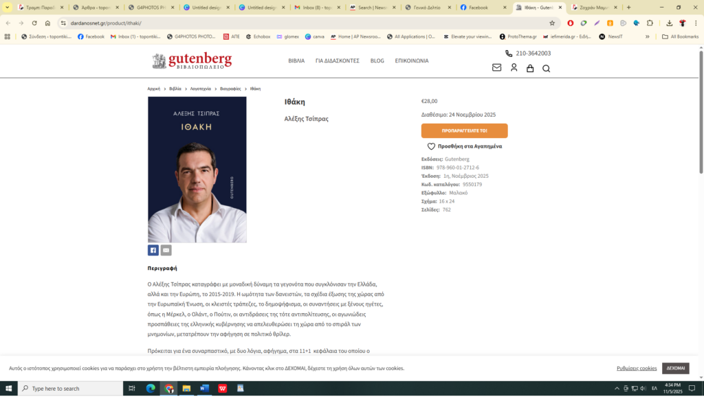 Διαθέσιμο για προπαραγγελίες είναι πλέον το βιβλίο του Αλέξη Τσίπρα «Ιθάκη» μέσα από τον εκδοτικό οίκο Γκούτενμπεργκ που το εκδίδει.