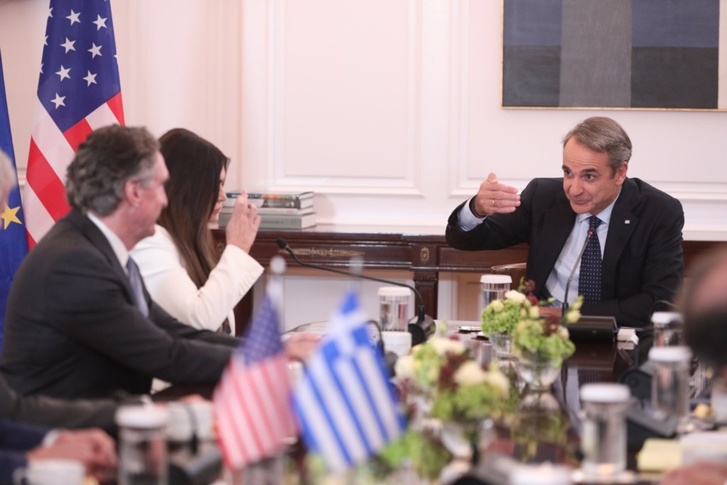 Ο Πρωθυπουργός Κυριάκος Μητσοτάκης συναντήθηκε στο Μέγαρο Μαξίμου με τον Υπουργό Εσωτερικών των ΗΠΑ Νταγκ Μπέργκαμ και τον Υπουργό Ενέργειας των ΗΠΑ Κρις Ράιτ.
