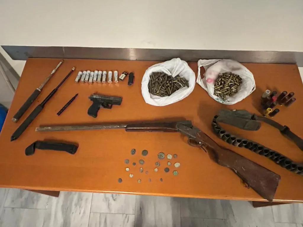 Σημειώνεται ότι, ο ανωτέρω συνελήφθη σήμερα καθώς σε υπαίθριο χώρο ιδιοκτησίας του βρέθηκε και κατασχέθηκε οπλισμός, φυσίγγια κ.α. αντικείμενα.