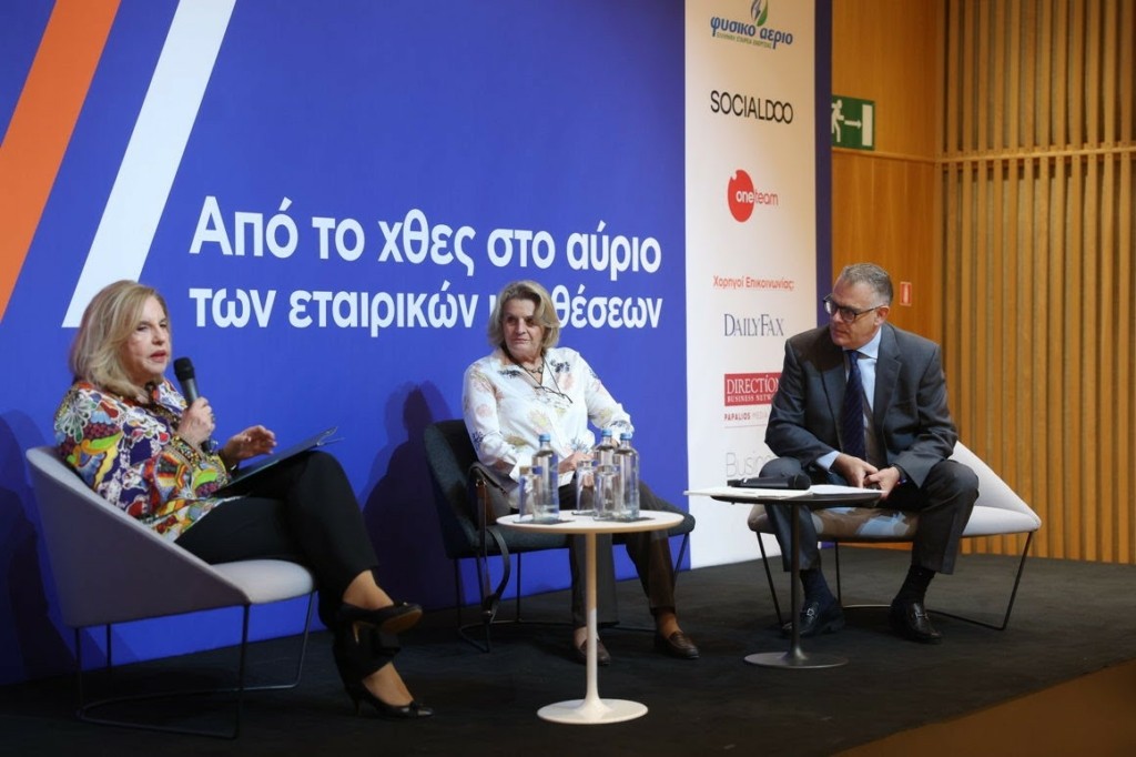 Στη συνέχεια, ακολούθησε συζήτηση με τις Αντιγόνη Λυμπεροπούλου, CEO της HDBI S.A. και την Ρόη Χάικου, Μέλος ΔΣ της CAPA, όπου αναδείχθηκε η εταιρική επικοινωνία ως θεμελιώδες στοιχείο ευθυγράμμισης κουλτούρας και σκοπού μέσα στους οργανισμούς. Συζητήθηκε η αναγκαιότητα συνέπειας λόγου και πράξης στην ηγεσία, η ενεργή διαχείριση της εμπιστοσύνης μεταξύ ηγεσίας και εργαζομένων και η κατανόηση του τρόπου με τον οποίο οι αξίες ενός οργανισμού εκφράζονται καθημερινά μέσω της αποτελεσματικής επικοινωνίας, η οποία δεν είναι απλώς υποστηρικτική λειτουργία, αλλά εργαλείο διαμόρφωσης ταυτότητας, συμπεριφοράς και ανθεκτικότητας.