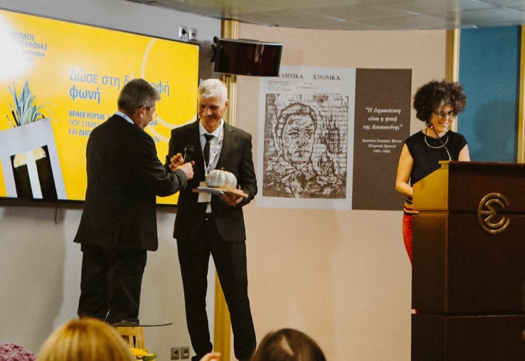 Η διάκριση αφορά στο επεισόδιο «Εδώ, που ζυμώνεται το μαζί», το οποίο μεταδόθηκε στο πλαίσιο της εκπομπής «+άνθρωποι» της ΕΡΤ3, της οποίας ο βραβευμένος δημοσιογράφος είναι υπεύθυνος και παρουσιαστής.
