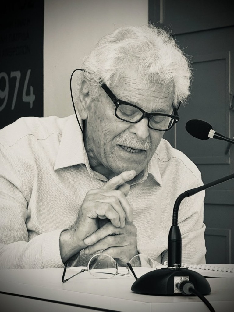 Στη συνέντευξη Τύπου, ο Κώστας Τσόκλης στάθηκε απέναντι στους δημοσιογράφους και τους φίλους της τέχνης και μίλησε με φωνή σταθερή και με τη διαύγεια ενός ανθρώπου που μετέτρεψε τη ζωή σε έργο.