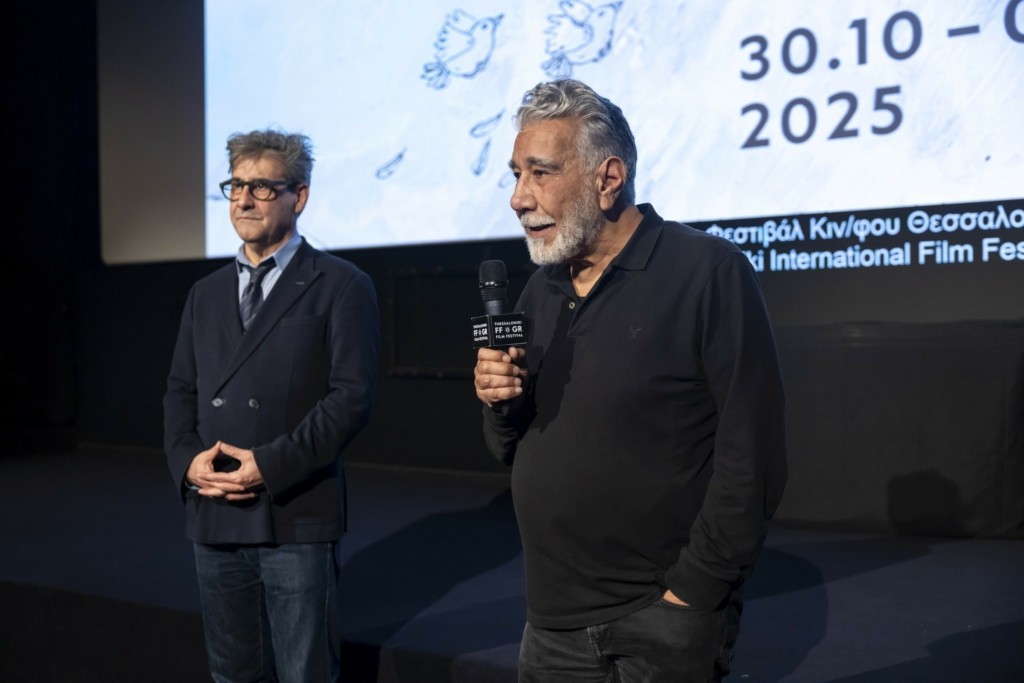 Ο Καλλιτεχνικός διευθυντής του Φεστιβάλ Ορέστης Ανδρεαδάκης, κατά την απονομή τιμητικού Χρυσού Αλέξανδρου στον Γιώργο Τσεμπερόπουλο