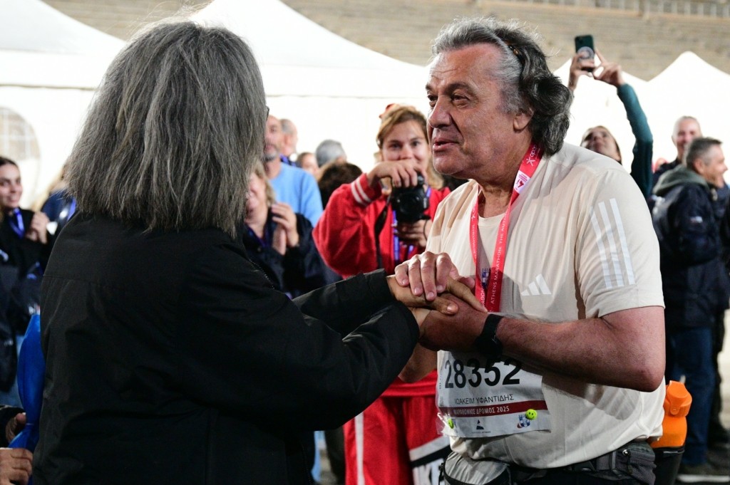 Η κ. Σακοράφα του απένειμε το μετάλλιο του τερματισμού και το ειδικό έπαθλο του τελευταίου δρομέα, τιμώντας την αποφασιστικότητα και το αθλητικό πνεύμα του Υφαντίδη. Η στιγμή καταγράφηκε και μοιράστηκε από την επίσημη σελίδα του Μαραθωνίου, ενθουσιάζοντας τους χιλιάδες θεατές.