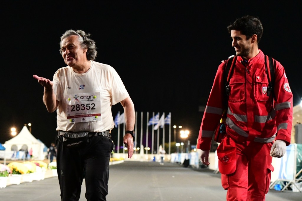 Μερικές ώρες αργότερα, σε μία στιγμή που αποτυπώνει το αληθινό πνεύμα του Μαραθωνίου, ο 67χρονος Ιωακείμ Υφαντίδης ήταν ο τελευταίος δρομέας που πέρασε τη γραμμή του τερματισμού το απόγευμα της Κυριακής, υπό το θερμό χειροκρότημα του κοινού.