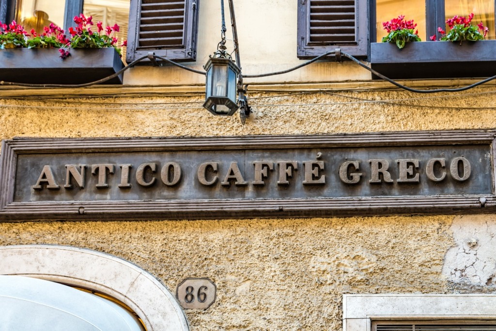 Στο Antico Caffé Greco, όπως είναι το πλήρες όνομά του, βλέπετε ήπιαν τον καφέ τους ο Γκαίτε, ο Λόρδος Βύρων, ο Κιτς, ο Μπωντλαίρ, ο Σταντάλ, ο Νίτσε και ο Σοπενχάουερ, ο μέγας παραμυθάς Άντερσεν, ο Ίψεν, ο Μοράβια, ενώ στα κομψά στρογγυλά τραπέζια από μάρμαρο ο Γκόγκολ έγραψε αρκετά κεφάλαια από τις «Νεκρές Ψυχές».