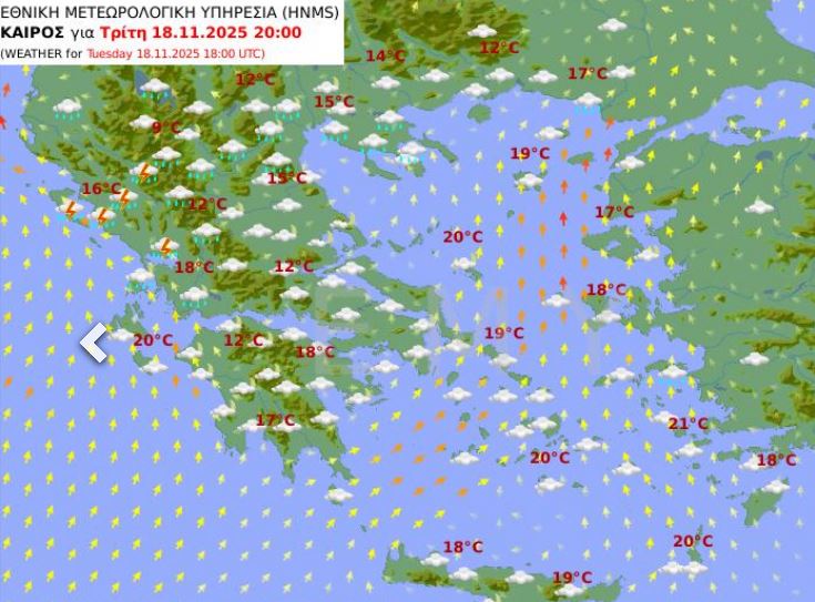 Σύμφωνα με τον Κλέαρχο Μαρουσάκη, σήμερα (12/11) θα περάσει μια σύντομη διαταραχή προς τα ανατολικά, με αλλαγή ανέμων από νοτιάδες σε βοριάδες και μικρή πτώση της θερμοκρασίας.
