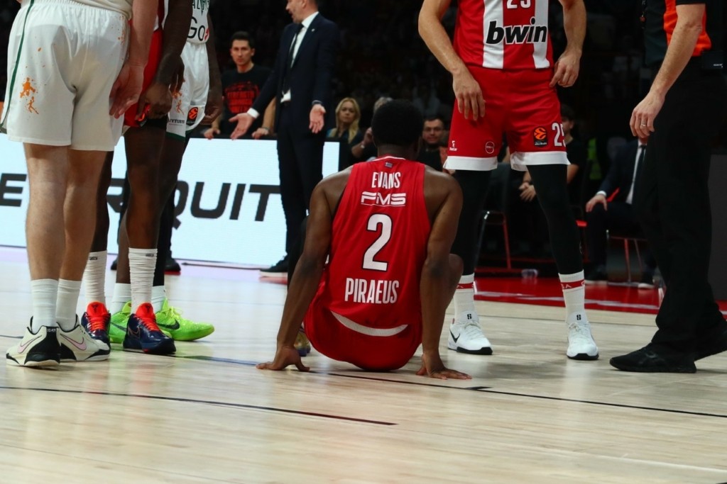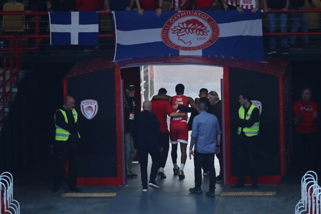Απίστευτη ατυχία για τον Κίναν Έβανς στο Ολυμπιακός – Ζαλγκίρις για τη 10η αγωνιστική της Euroleague, με τον Αμερικανό να παίζει λιγότερο από δύο λεπτά, προτού αποχωρήσει υποβασταζόμενος για τα αποδυτήρια του ΣΕΦ.