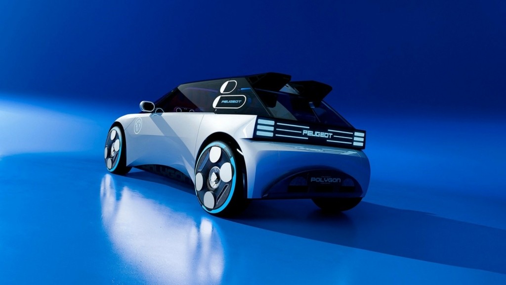 Πέρα από το εμπρός μέρος, το POLYGON CONCEPT προαναγγέλλει την συνολική σχεδιαστική γλώσσα των μελλοντικών PEUGEOT: καθαρά, απλά και γεωμετρικά σχήματα για μια ακόμα πιο έντονη «αιλουροειδή» στάση.