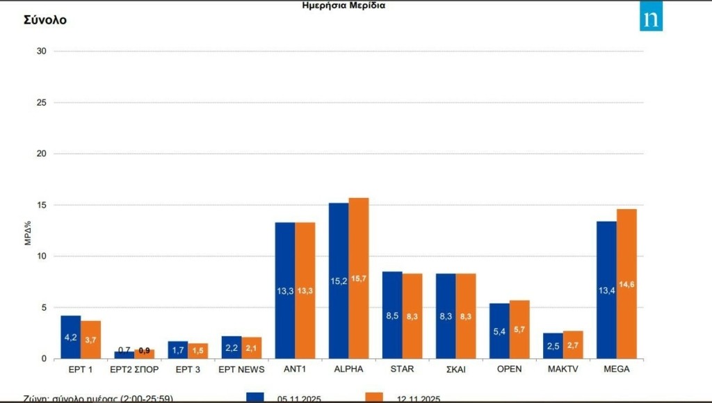 Δεύτερη επιλογή ήταν το Mega επίσης με τάσεις υποχώρησης στην επίδοση του. Αντιθέτως ο ΑΝΤ1, χθες, εμφάνισε κέρδη και απέσπασε μερίδιο ίδιο με εκείνο που είχε ακριβώς την ίδια ημέρα της περασμένης εβδομάδας.