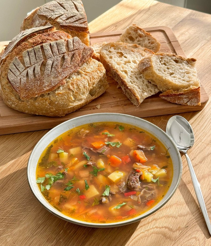 Μια υγιεινή και χορταστική σούπα με ζωμό βοδινού ή μοσχαρίσιου κρέατος, μεδούλι, χορταρικά και λαχανικά, με οικογενειακή πατροπαράδοτη συνταγή.