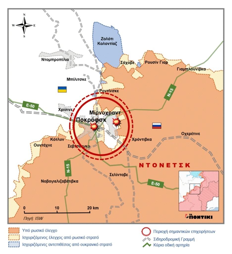 Η γενική εκτίμηση είναι ότι οι Ρώσοι θα καταφέρουν τελικά να καταλάβουν το Ποκρόφσκ και τη γειτονική Μίρνοχραντ, αλλά «με σημαντικό κόστος και καθυστέρηση».