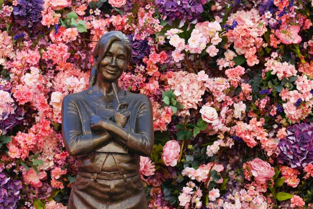 Η βραβευθείσα με Όσκαρ Ρενέ Ζελβέγκερ, που πρωταγωνίστησε και στις τέσσερις ταινίες “Bridget Jones”, παρέστη στην εκδήλωση των αποκαλυπτηρίων του αγάλματος, που συμπίπτει με την επέτειο 25 ετών από την κυκλοφορία της πρώτης ταινίας, “Bridget Jones’ Diary”.