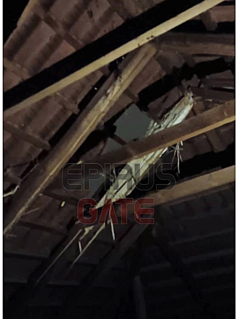 Τα κεραμίδια της στέγης έσπασαν και εκτοξεύτηκαν γύρω από την οικοδομή. Η Πυροσβεστική κλήθηκε αμέσως για να αντιμετωπίσει την κατάσταση και από την αυτοψία στο χώρο διαπιστώθηκε πως η τσιμεντένια πλάκα που βρίσκεται κάτω από την στέγη, δεν υπέστη ρωγμές ή κάποιες άλλες ζημιές.