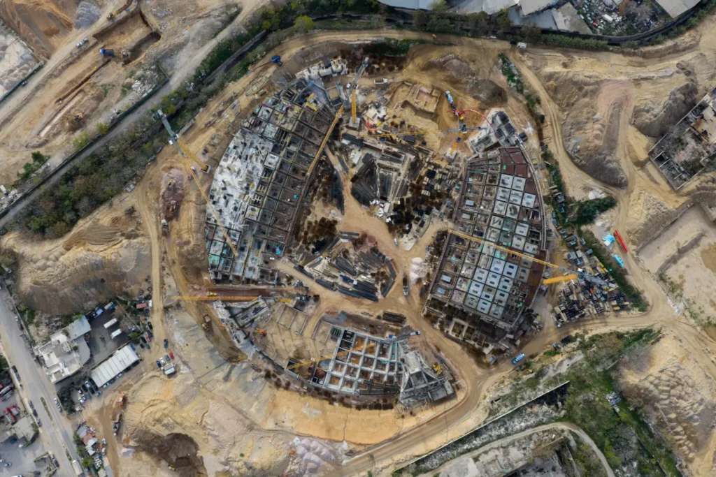 Οι νέες φωτογραφίες που δημοσιεύτηκαν από drone δείχνουν τη μεγάλη πρόοδο των έργων, καθώς φαίνεται και οι πρώτες εξέδρες που σηκώνονται.