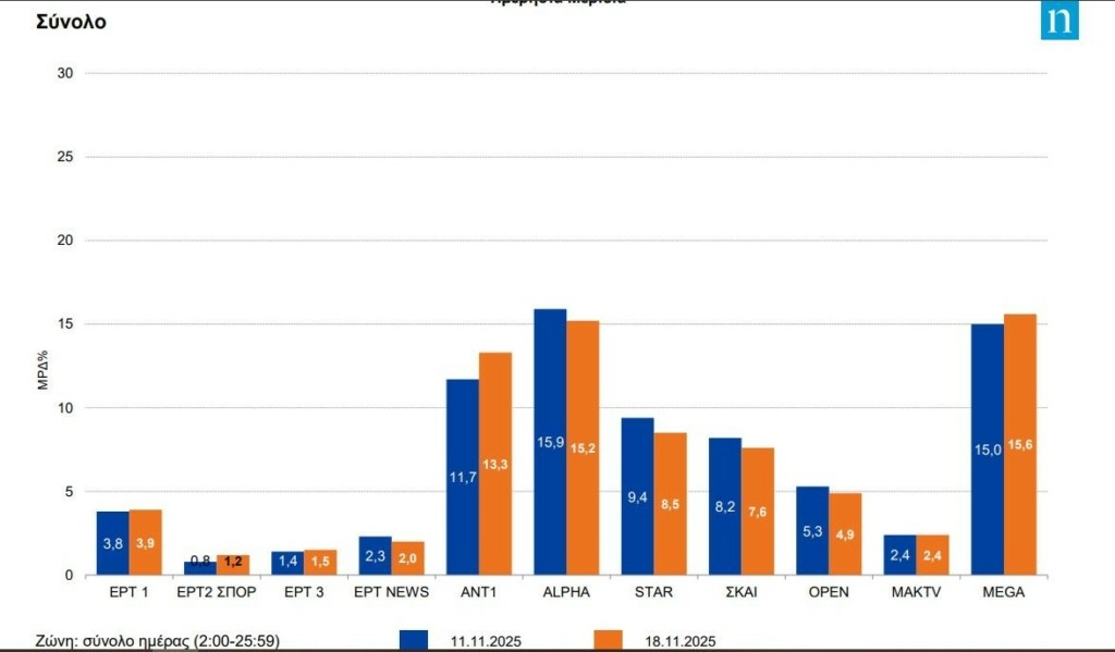 Πιο κοντά στο 5% διαμορφώθηκε το μερίδιο του Open, κάτω από το 4% σχηματίστηκε εκείνο της ΕΡΤ1 και πάνω από τα άλλα τρία κρατικά κανάλια βρέθηκε το MAK TV!