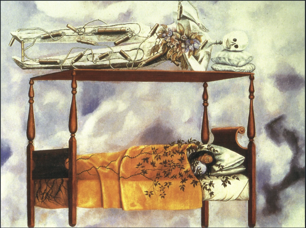 Ο πίνακας που πωλείται σε δημοπρασία απεικονίζει την Κάλο να κοιμάται σε ένα ξύλινο κρεβάτι αποικιακού στιλ, τυλιγμένη σε μια χρυσή κουβέρτα κεντημένη με κληματαριές και φύλλα που σέρνονται. Πάνω από αυτήν, φαίνεται να αιωρείται πάνω στις κολόνες του κρεβατιού, ένας σκελετός σε φυσικό μέγεθος.