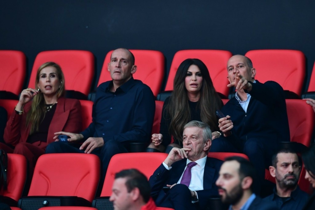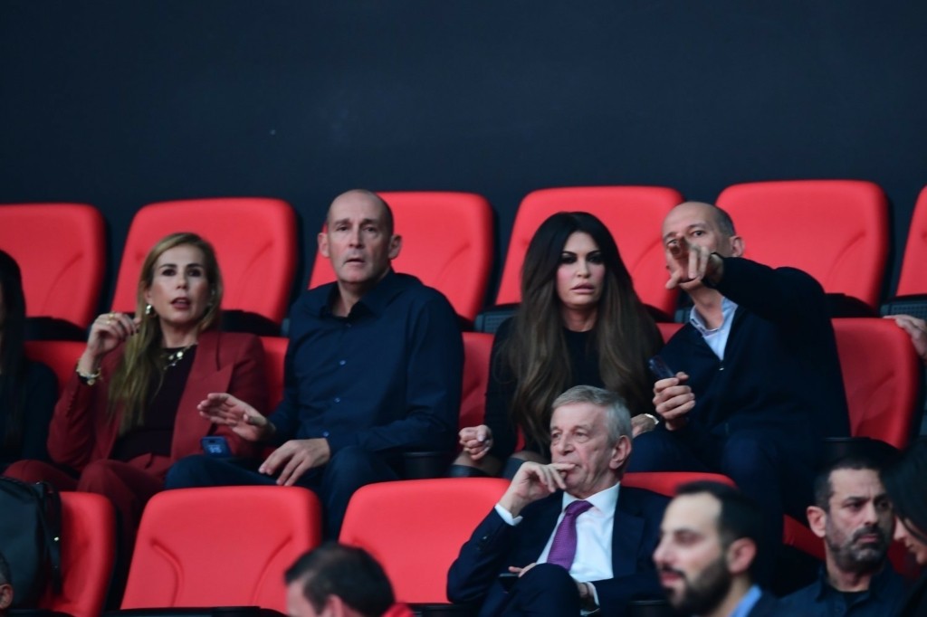 Όπως και την προηγούμενη φορά που βρέθηκε στο ΣΕΦ, η κ. Γκιλφόιλ παρακολουθεί τον αγώνα μαζί με τους ιδιοκτήτες της ΚΑΕ Ολυμπιακός, Παναγιώτη και Γιώργο Αγγελόπουλο.