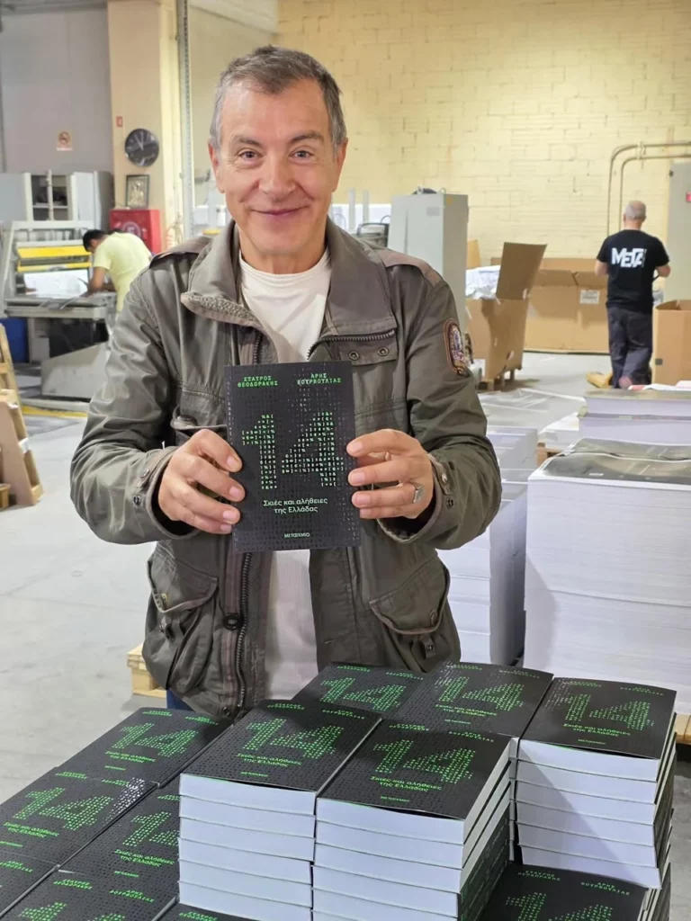 «Τυπώθηκε! Και την Τρίτη θα είναι στα βιβλιοπωλεία όλης της χώρας! Ένα βιβλίο γεμάτο στοιχεία για όλα αυτά που ζούμε, για όλα αυτά που συζητάμε. Ένα τολμηρό βιβλίο που γράψαμε μαζί με τον Άρη Βουρβούλια. Σε λίγο θα σας δείξω βίντεο από την βιβλιοδεσία και το πακετάρισμα του. Μετά θα μπει σε φορτηγά, πλοία και αεροπλάνα, για να ταξιδέψει απο τον Έβρο μέχρι την Κρήτη. Και όπως είπαμε: Την Τρίτη ζεστό και μυρωδάτο στα ράφια όλων των βιβλιοπωλείων», αναφέρει ο δημοσιογράφος στην ανάρτησή του.