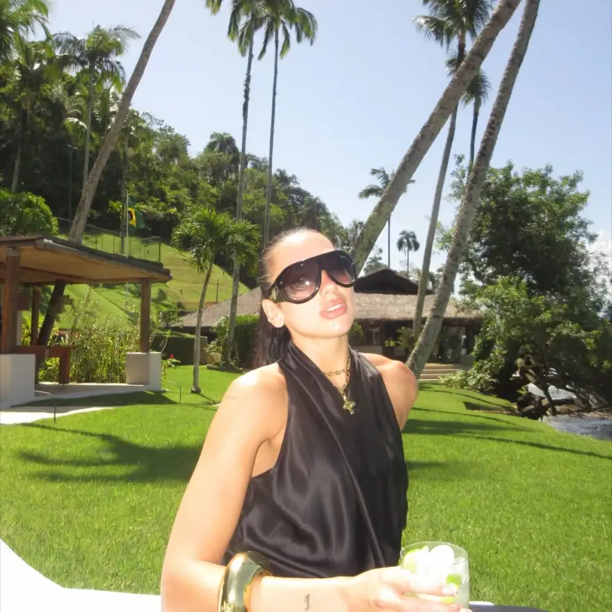Σε κάποια από τα στιγμιότυπα, η τραγουδίστρια ποζάρει με μωβ μπικίνι σε μία ξαπλώστρα κάνοντας ηλιοθεραπεία, ενώ σε άλλα φαίνεται να απολαμβάνει θαλάσσια σπορ. Στη λεζάντα, με την οποία συνόδευσε την ανάρτησή της, η Ντούα Λίπα έγραψε: «Βραζιλία. Με τον τρόπο των cariocas (=κάτοικοι του Ρίο ντε Τζανέιρο)».