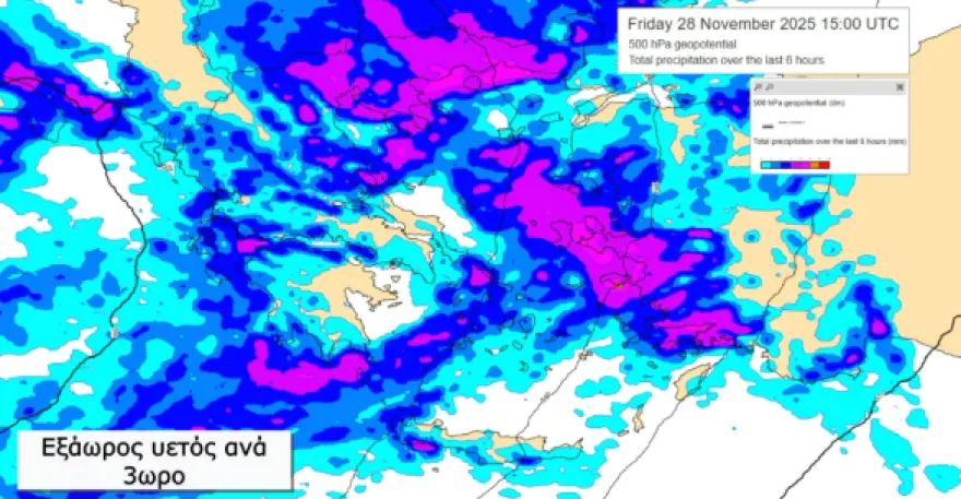 Την Παρασκευή (28-11-25) ισχυρές βροχές και καταιγίδες προβλέπονται σε κεντρική και ανατολική Μακεδονία, Θράκη, ανατολικό Αιγαίο και μέχρι νωρίς το πρωί στη δυτική Ελλάδα.