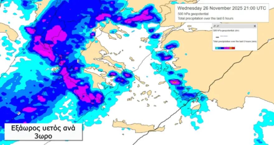 Αύριο Τετάρτη (26-11-25) ισχυρές βροχές και καταιγίδες προβλέπονται: