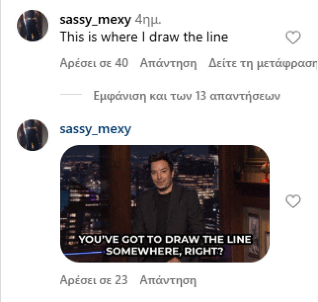 «Αυτό είναι… πέρα από κάθε όριο» σχολίασε η ηθοποιός και μοντέλο, η οποία στη συνέχεια ανήρτησε τη φωτογραφία και στο δικό της προφίλ στο Instagram γράφοντας: