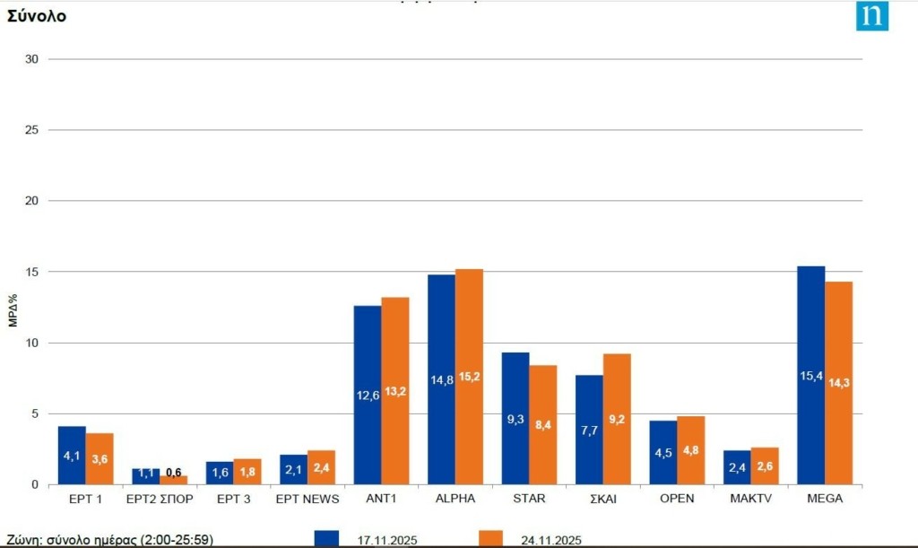 Η τριάδα Alpha, Mega, ANT1 αποτέλεσαν τις επιλογές στις οποίες κινήθηκε η μεγαλύτερη μερίδα του τηλεοπτικού κοινού.
