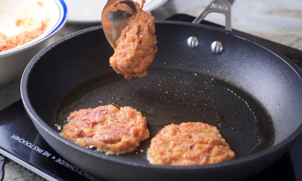 4. Βάλτε αρκετό λάδι σε ένα τηγάνι και μόλις ζεσταθεί καλά, προσθέστε τους κεφτέδες και αφήστε τους να τηγανιστούν για 3 έως 5 λεπτά σε μέτρια προς χαμηλή φωτιά ή μέχρι να πάρουν ένα σκούρο χρυσοκαφέ χρώμα εξωτερικά. Γυρίστε τους και επαναλάβετε τη διαδικασία.