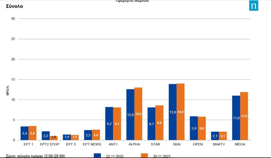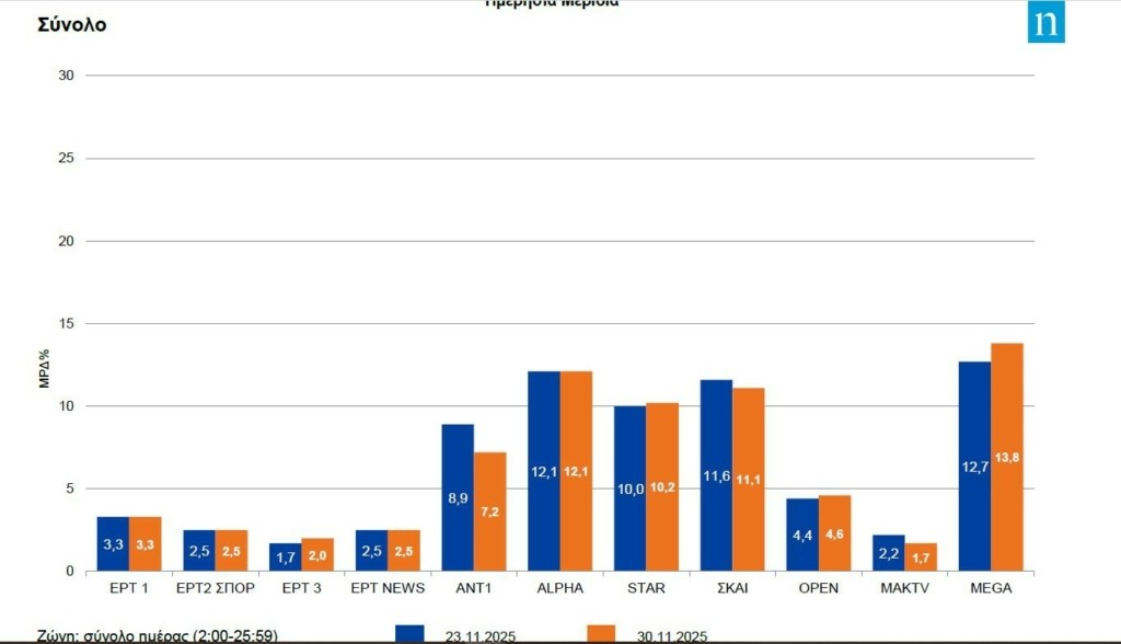 «Κλειδωμένη» η υψηλότερη τηλεθέαση από τον Alpha την Παρασκευή (28/11)