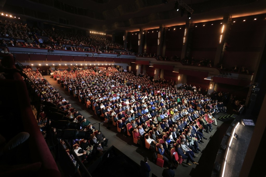 Οι πρώτες σειρές καθισμάτων ήταν «κρατημένες» από τους διοργανωτές. Μεταξύ άλλων για τον Σωκράτη Φάμελλο, τον Αλέξη Χαρίτση, την Όλγα Γεροβασίλη, τον Γιάννη Δραγασάκη. Ξεχωρίζει η θέση που κρατήθηκε τιμητικά για τον αείμνηστο Αλέκο Φλαμπουράρη. Στο κάθισμα υπάρχει ένα τριαντάφυλλο.