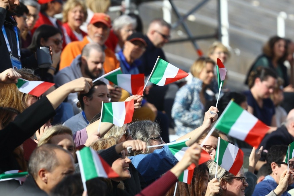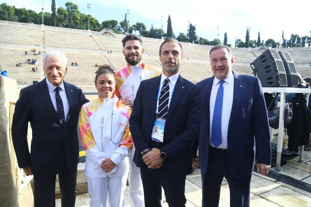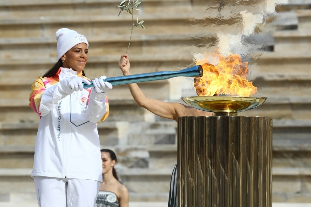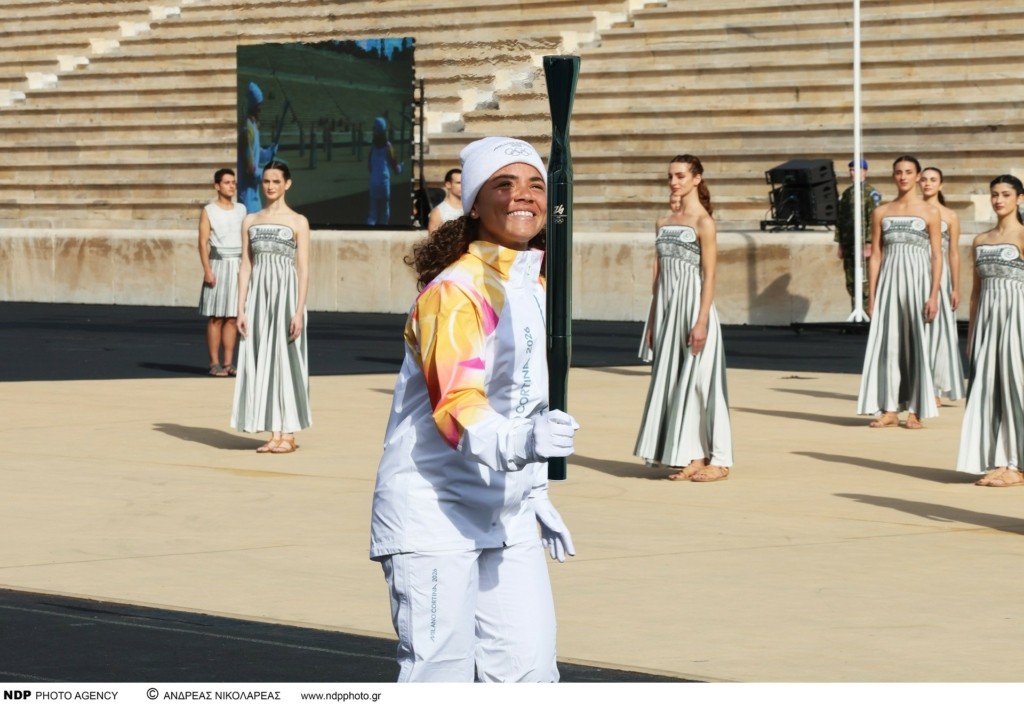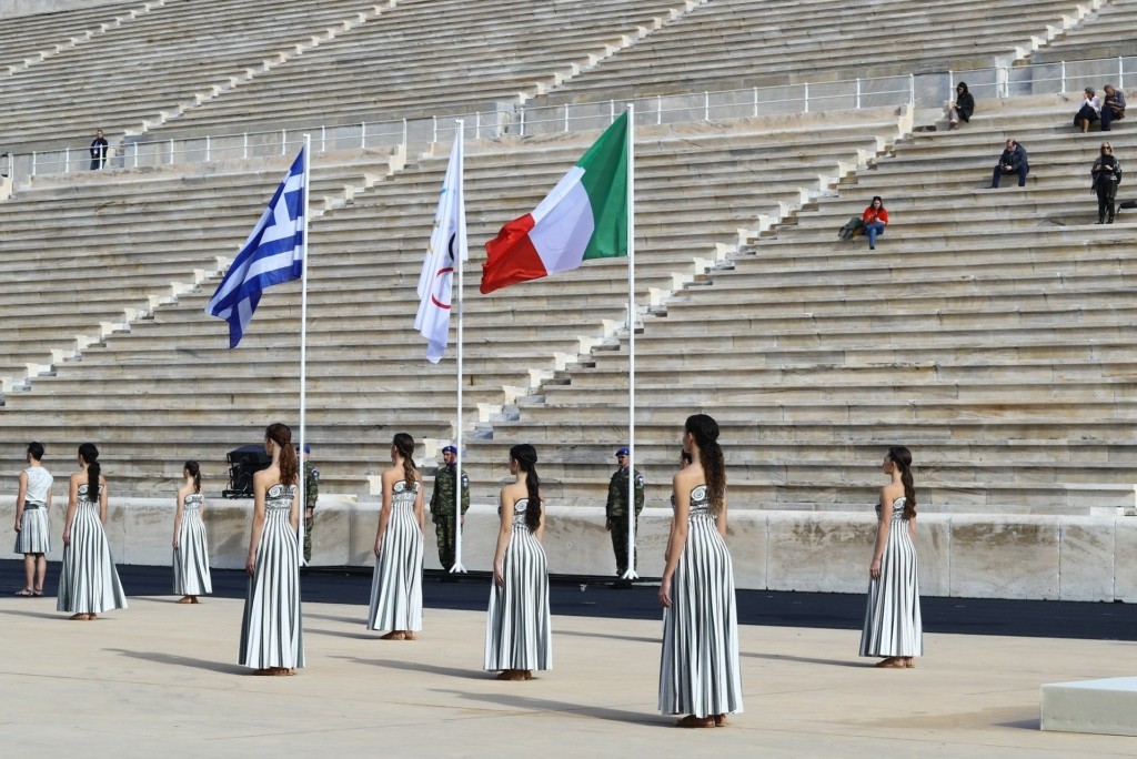Χωρίς το καλλιτεχνικό σκέλος, λόγω καιρικών συνθηκών, πραγματοποιήθηκε η παράδοση της Φλόγας στους Ιταλούς που σε δύο μήνες φιλοξενούν τους Χειμερινούς Ολυμπιακούς Αγώνες.