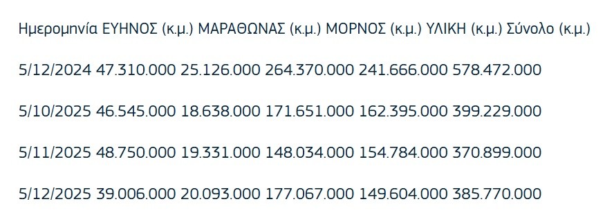 Ωστόσο, κατά την εταιρεία ακόμα υστερούμε κατά 200 εκατομμύρια κυβικά μέτρα, σε σχέση με πέρυσι την ίδια περίοδο, σύμφωνα με τα τελευταία διαθέσιμα στοιχεία της ΕΥΔΑΠ.