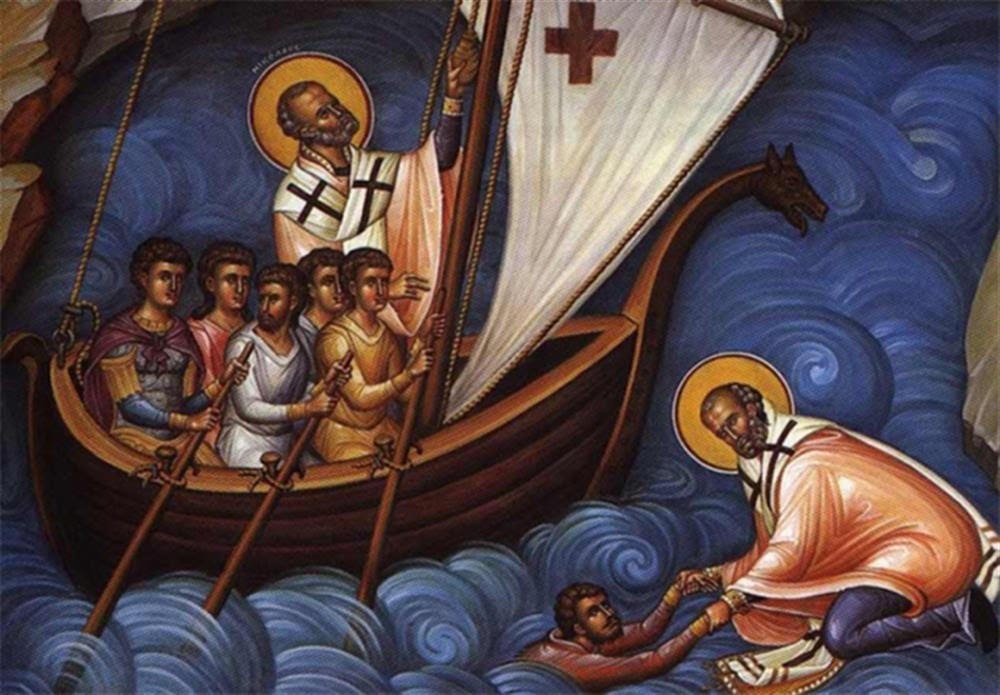 Ο Άγιος Νικόλαος, τιθασεύει τη θάλασσα, ως προστάτης των ναυτικών