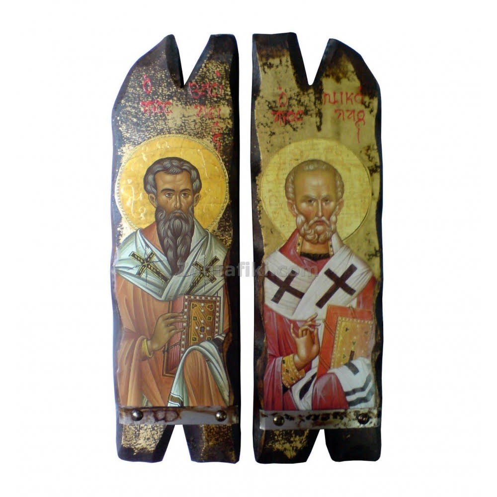 Δίπτυχο με την ταυτόχρονη αγιογράφηση του Αγίου Βασιλείου και του Αγίου Νικολάου