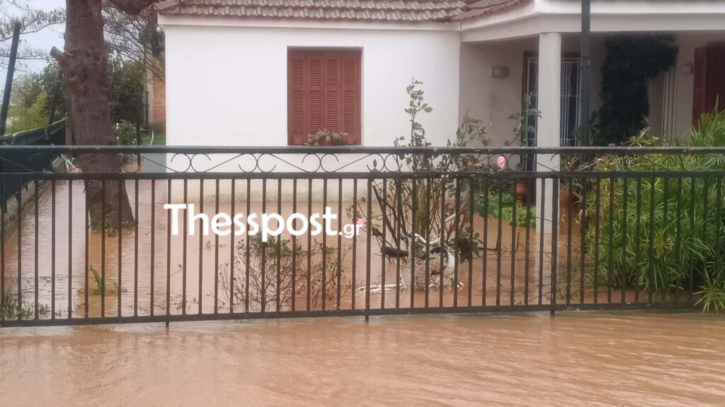 Από τη σφοδρότητα των φαινομένων έσπασε ο παραπόταμος Ταμπάκος και πλημμύρισαν σπίτια.