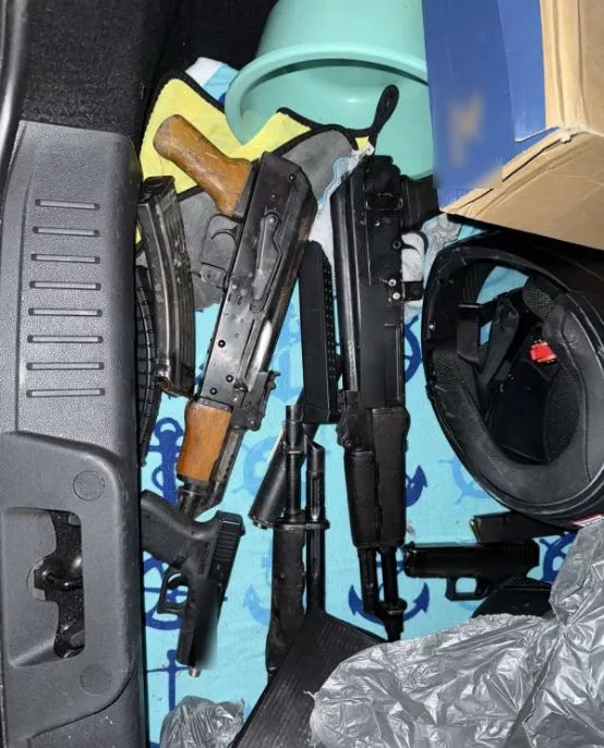 Κατά την έφοδο των αστυνομικών σε χώρο του εντόπισαν κλεμμένα αυτοκίνητα και μοτοσυκλέτες. Σε ένα από αυτά τα οχήματα βρέθηκαν τρία καλάνσικοφ, πιστόλια με σιγαστήρα αλλά και μπιτόνια με βενζίνη και γάντια. Οι Αρχές εκτιμούν πως ο 37χρονος, ο οποίος συνελήφθη, με τέτοιο οπλισμό προετοίμαζε κάτι και πως τα μπιτόνια με τη βενζίνη ήταν για να κάψει το όχημα στη συνέχεια. Για την υπόθεση έχει συλληφθεί και μια γυναίκα σύμφωνα με την αστυνομία.