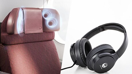 Οι ταξιδιώτες σε πρώτη θέση και business class μπορούν να ακούσουν ήχο με Sony ακουστικά, μέσω Bluetooth ή, για πρώτη φορά στον κλάδο, από ενσωματωμένα ηχεία στο «προσκέφαλο» της θέσης τους.