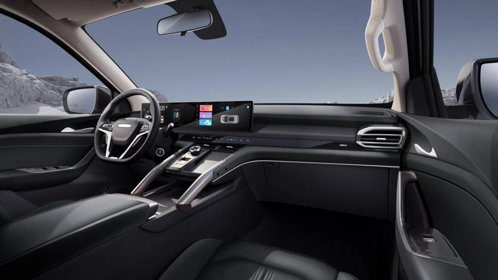 Στο εσωτερικό, η εικόνα απέχει πολύ από τα τυπικά επαγγελματικά δεδομένα. Η διπλή οθόνη 12,3’’ (πίνακας οργάνων και infotainment) συνθέτει ένα ενιαίο ψηφιακό cockpit, ενώ η συμβατότητα με Apple CarPlay και Android Auto, η ασύρματη φόρτιση 50W και οι πολλαπλές θύρες USB εξασφαλίζουν άνεση και συνδεσιμότητα. Τα ηλεκτρικά ρυθμιζόμενα θερμαινόμενα καθίσματα, ο αυτόματος κλιματισμός και η προσεγμένη ηχομόνωση δημιουργούν ένα περιβάλλον που θυμίζει περισσότερο SUV παρά εργαλείο εργασίας. Η απόσταση 965 mm εμπρός-πίσω εξασφαλίζει ευρυχωρία για επιβάτες κάθε ύψους, ενώ η ποιότητα υλικών είναι συγκρίσιμη με μεγαλύτερα μοντέλα επιβατικών της αγοράς.