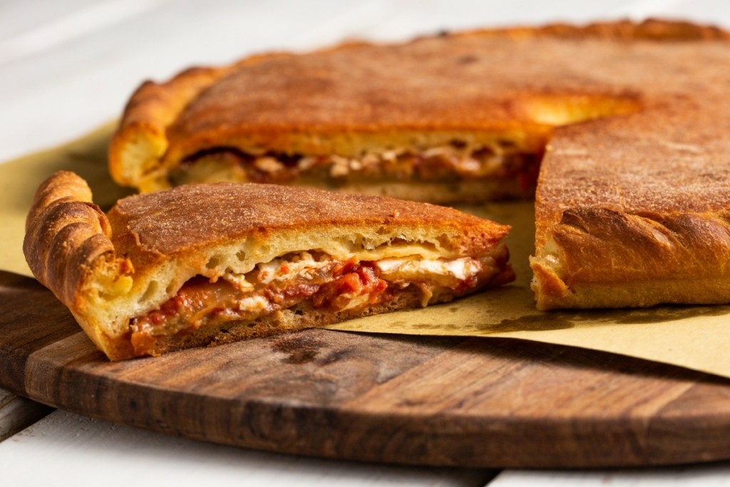 7.Ψήστε την σε προθερμασμένο φούρνο στους 200ο C με αέρα για 30 λεπτά. Μόλις ροδίσει η scacciata εξωτερικά, μειώστε τη θερμοκρασία στους 180° C και συνεχίστε το ψήσιμο για άλλα 10 λεπτά. Βγάλτε την από τον φούρνο, σκεπάστε την με μια πετσέτα και αφήστε την να ξεκουραστεί για τουλάχιστον 45 λεπτά. Η ξεκούραση είναι πολύ σημαντική, καθώς η πίτα πρέπει να σφίξει πριν την κόψετε σε φέτες.