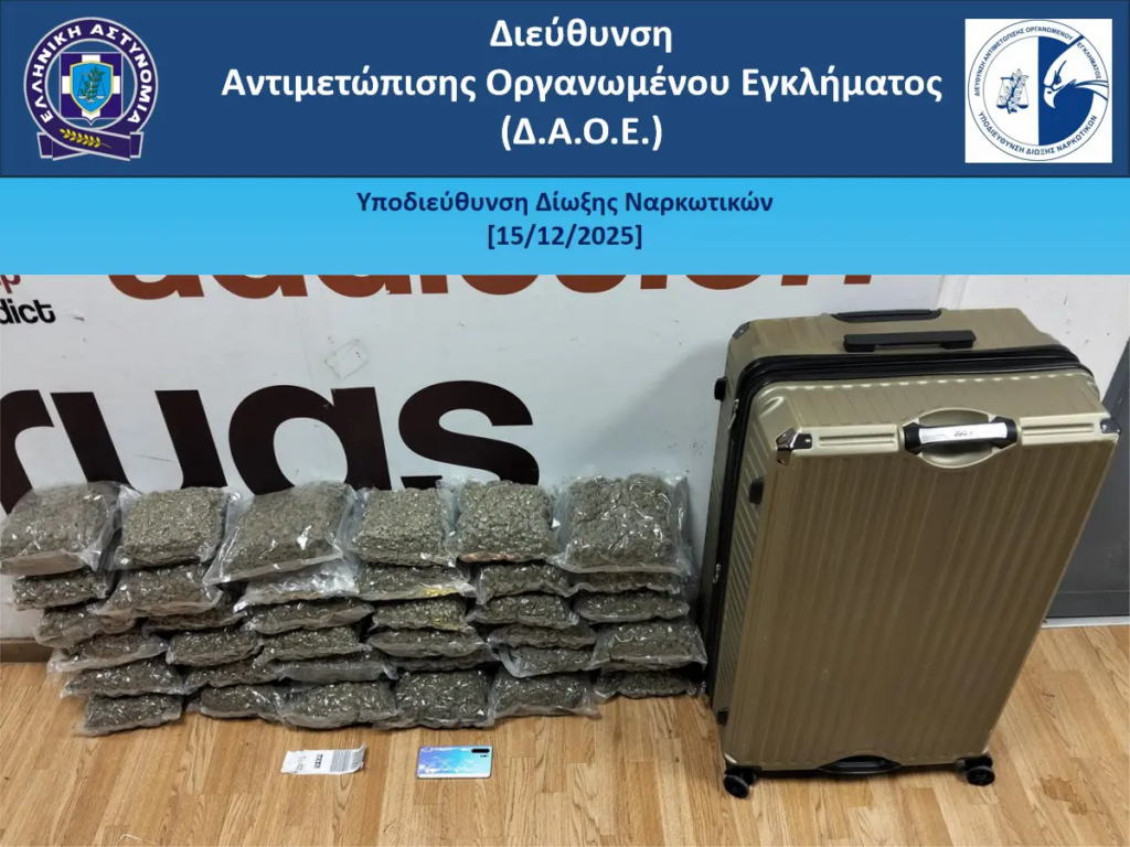 Στη σύλληψη ενός 23χρονου αλλοδαπού άνδρα, μέλους διεθνούς σπείρας, που κουβαλούσε στη βαλίτσα του περισσότερα από 18,5 κιλά κάνναβης, προχώρησαν οι Αρχές το πρωί της Δευτέρας, 15/12, στο αεροδρόμιο «Ελ. Βενιζέλος».