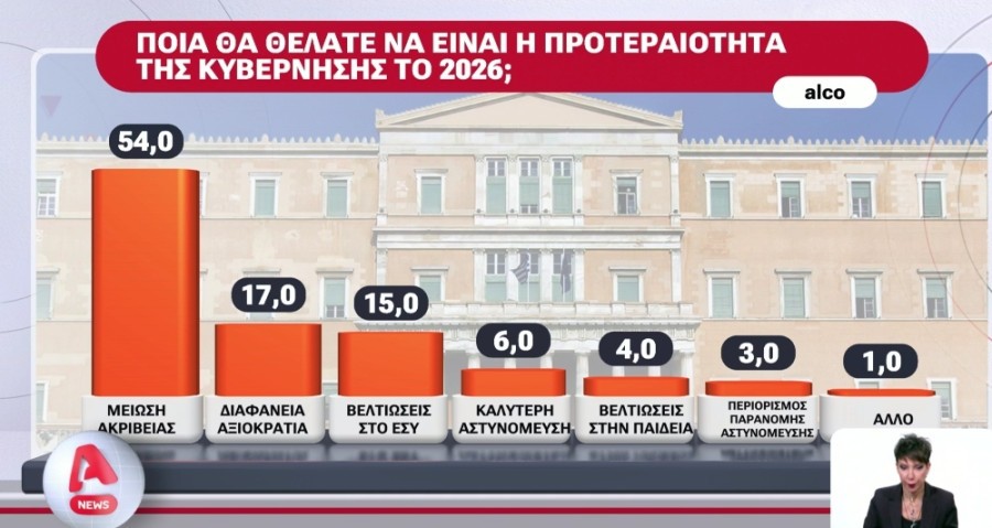 Η μείωση της ακρίβειας είναι αυτό που θα πρέπει πρώτα να απασχολήσει την κυβέρνηση λέει το 54% των ερωτηθέντων.