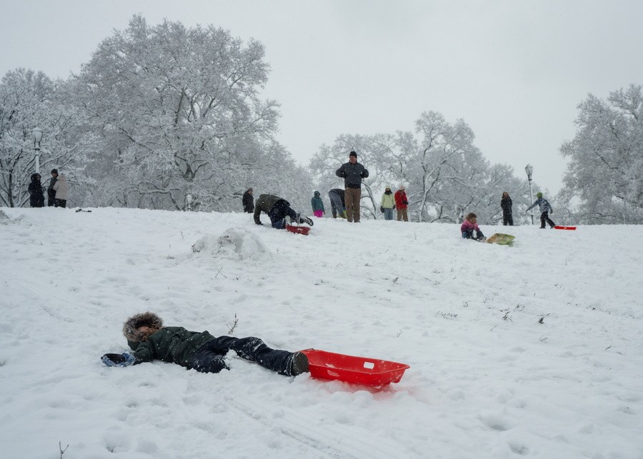 Η χιονόπτωση έγινε ιδιαίτερα αισθητή σε μια πόλη που τα τελευταία χρόνια έχει καταγράψει χαμηλότερα από τα κανονικά επίπεδα χιονιού.