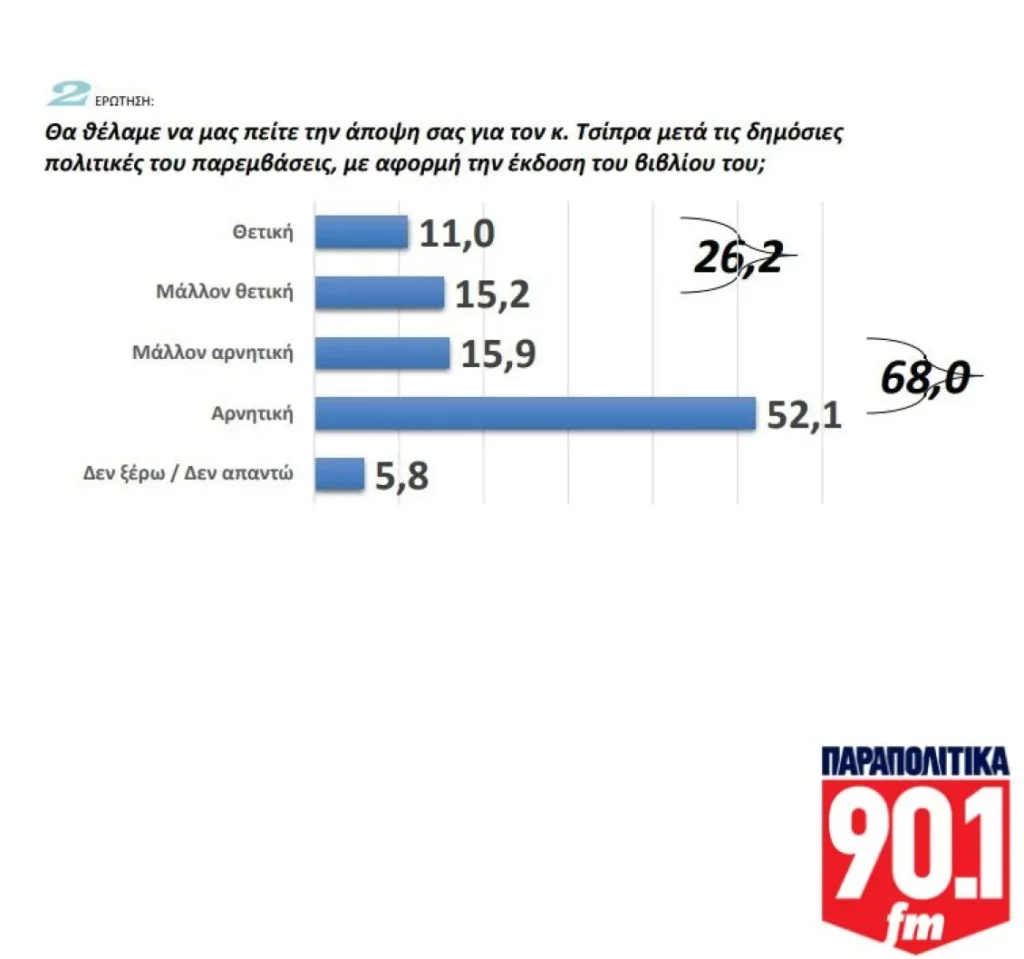 Ενδιαφέροντα ευρύματα περιλαμβάνει το δεύτερο μέρος της δημοσκόπησης της GPO για τον ρ/σ Παραπολιτικά FM, καθώς καταγράφεται για άλλη μια φορά η δυσφορία των πολιτών για την κυβέρνηση, αλλά και οι διαθέσεις τους απέναντι στο ενδεχόμενο σχηματισμού νέων κομμμάτων από τους πρώην πρωθυπουργούς, Αλέξη Τσίπρα και Αντώνη Σαμαρά, και την πρόεδρο του Συλλόγου Συγγενών Θυμάτων της τραγωδίας των Τεμπών, Μαρία Καρυστιανού.