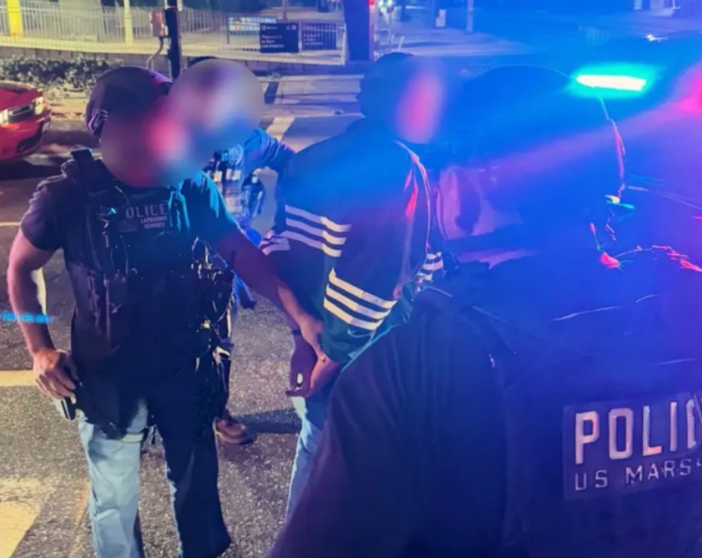 Στο οπτικό υλικό, ο γιος του σκηνοθέτη φαίνεται ακινητοποιημένος στο έδαφος με δεμένα τα χέρια πίσω από την πλάτη, πριν οδηγηθεί σε περιπολικό και μεταφερθεί σε χώρο κράτησης.