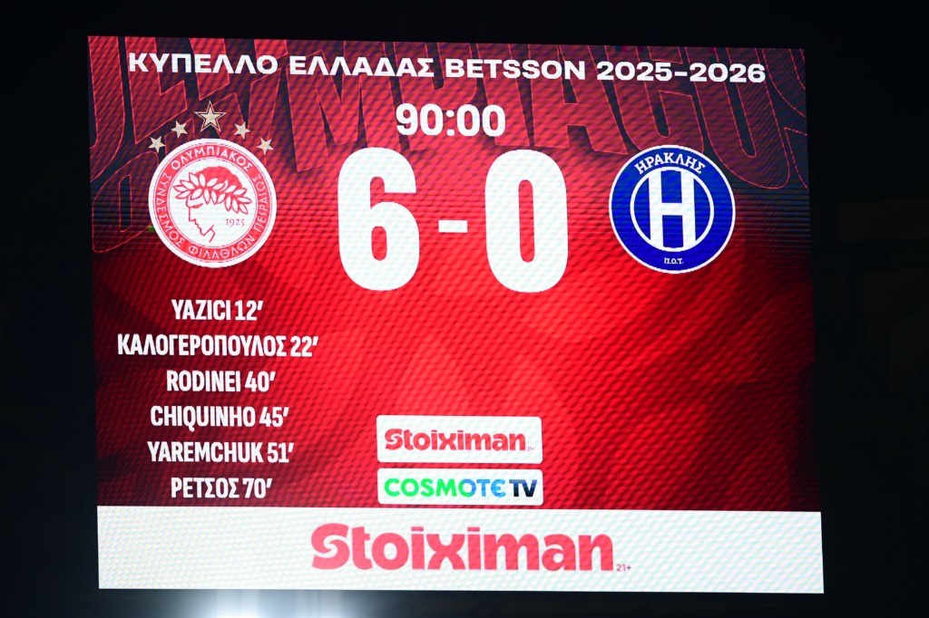 Ο Ολυμπιακός περάτωσε θριαμβευτικά τις αγωνιστικές υποχρεώσεις του στη League Phase του Κυπέλλου Ελλάδας, συντρίβοντας (και) τον Ηρακλή με 6-0 στο «Γεώργιος Καραϊσκάκης» στο πλαίσιο της 5ης αγωνιστικής και κατακτώντας εμφατικά την πρώτη θέση στην τελική βαθμολογία, με τέσσερις νίκες σε τέσσερις αγώνες και τέρματα 18-3, κερδίζοντας την απευθείας πρόκριση στα προημιτελικά.