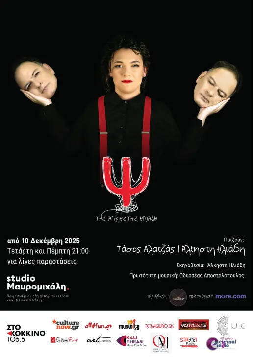 Το «Ψ.» της Άλκηστης Ηλιάδη επιστρέφει στη σκηνή, με τους θεατές στο Studio Μαυρομιχάλη να έχουν την ευκαιρία να παρακολουθήσουν ένα τολμηρό, σύγχρονο θεατρικό έργο που βουτά με χιούμορ, τρυφερότητα και αιφνίδιες συγκινήσεις στα πιο μυστικά δωμάτια της ανθρώπινης ψυχής.