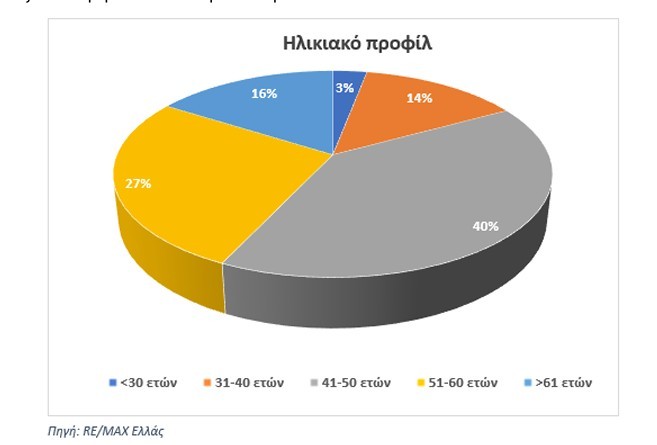 Το προφίλ των ξένων αγοραστών δείχνει ότι πρόκειται κατά κανόνα για άτομα ώριμης ηλικίας, με σταθερή οικονομική βάση. Οι περισσότεροι κινούνται στις ηλικίες 41–50 ετών, ενώ ακολουθούν όσοι βρίσκονται μεταξύ 51 και 60 ετών. Πολύ μικρότερη είναι η συμμετοχή νεότερων αγοραστών, στοιχείο που επιβεβαιώνει ότι οι αγορές γίνονται κυρίως από ανθρώπους με σαφή επενδυτικό σχεδιασμό.