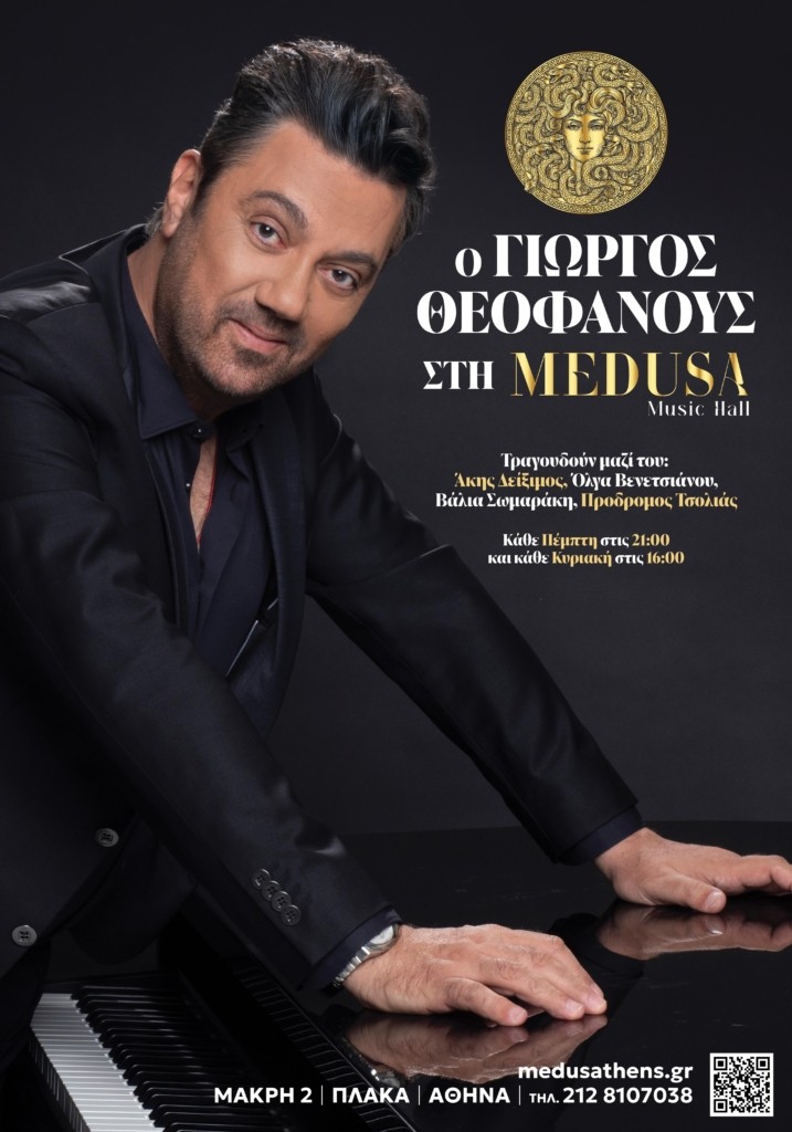 Σε αυτή τη νέα εποχή της «Μέδουσας», ο Γιώργος Θεοφάνους υπογράφει και επιμελείται το μουσικό πρόγραμμα, συμμετέχοντας ο ίδιος στο πιάνο.